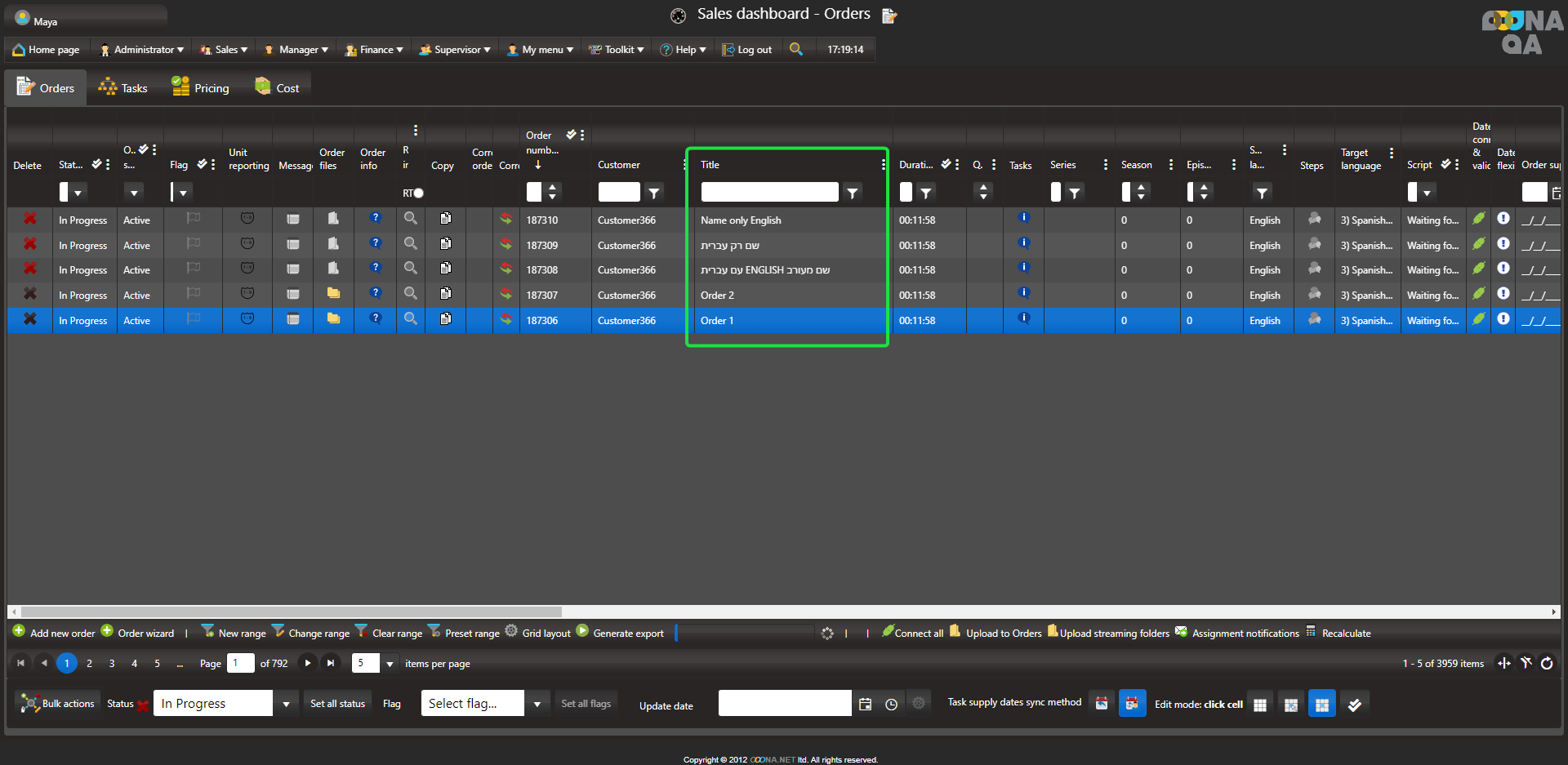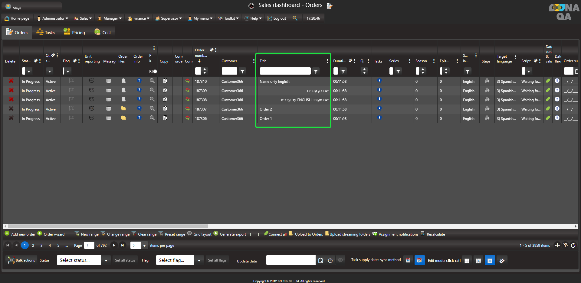 Setting text alignment in grids for Right-to-Left languages When grids contain text of Right-to-Left languages, the task alignment can be set in the system configuration. From: Administrator > Web Administrator Configuration > Defaults > Text align When set to Left alignment: When set to Right Alignment: