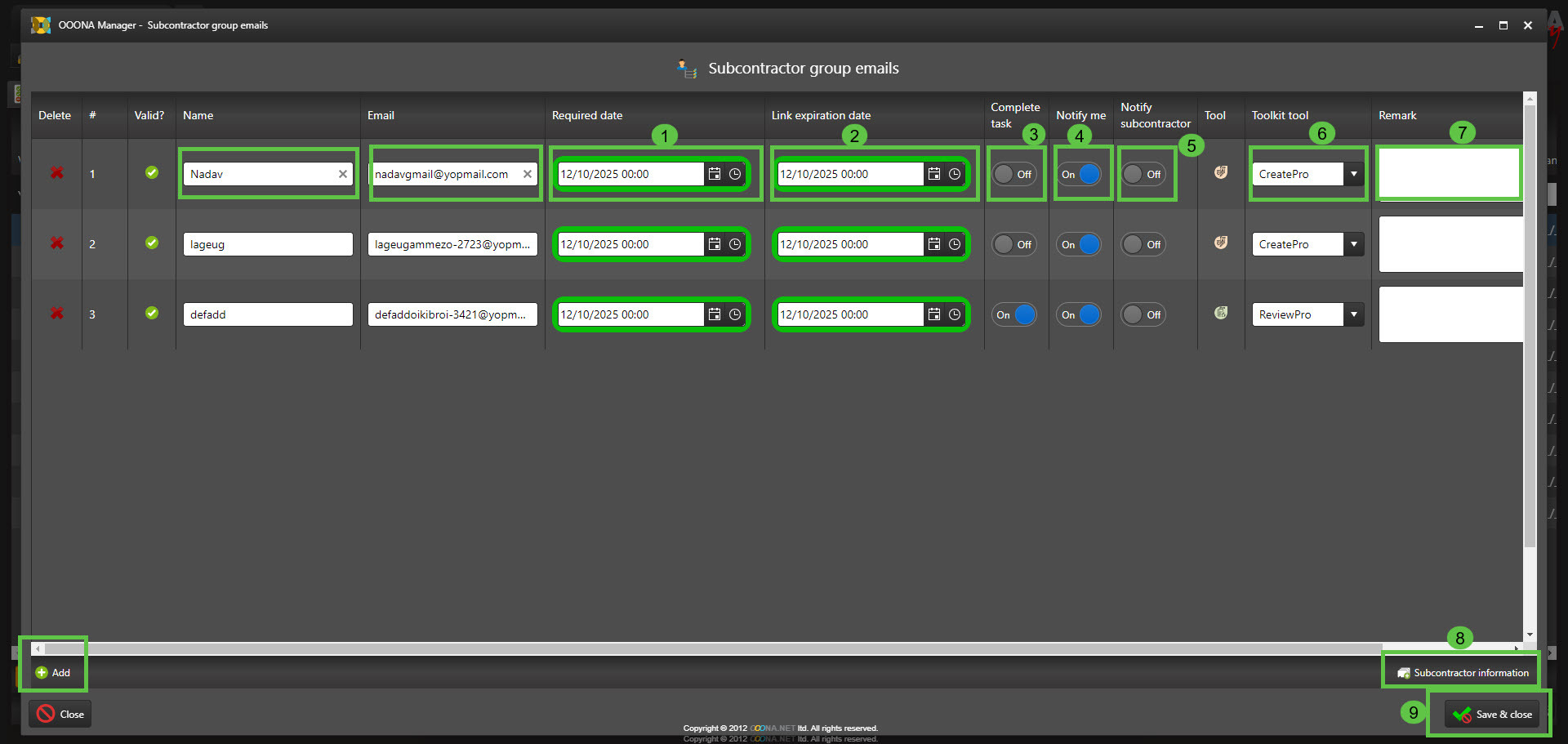 8. Subcontractor information (from here you can manage the frequently used subcontractors that the system remembers).