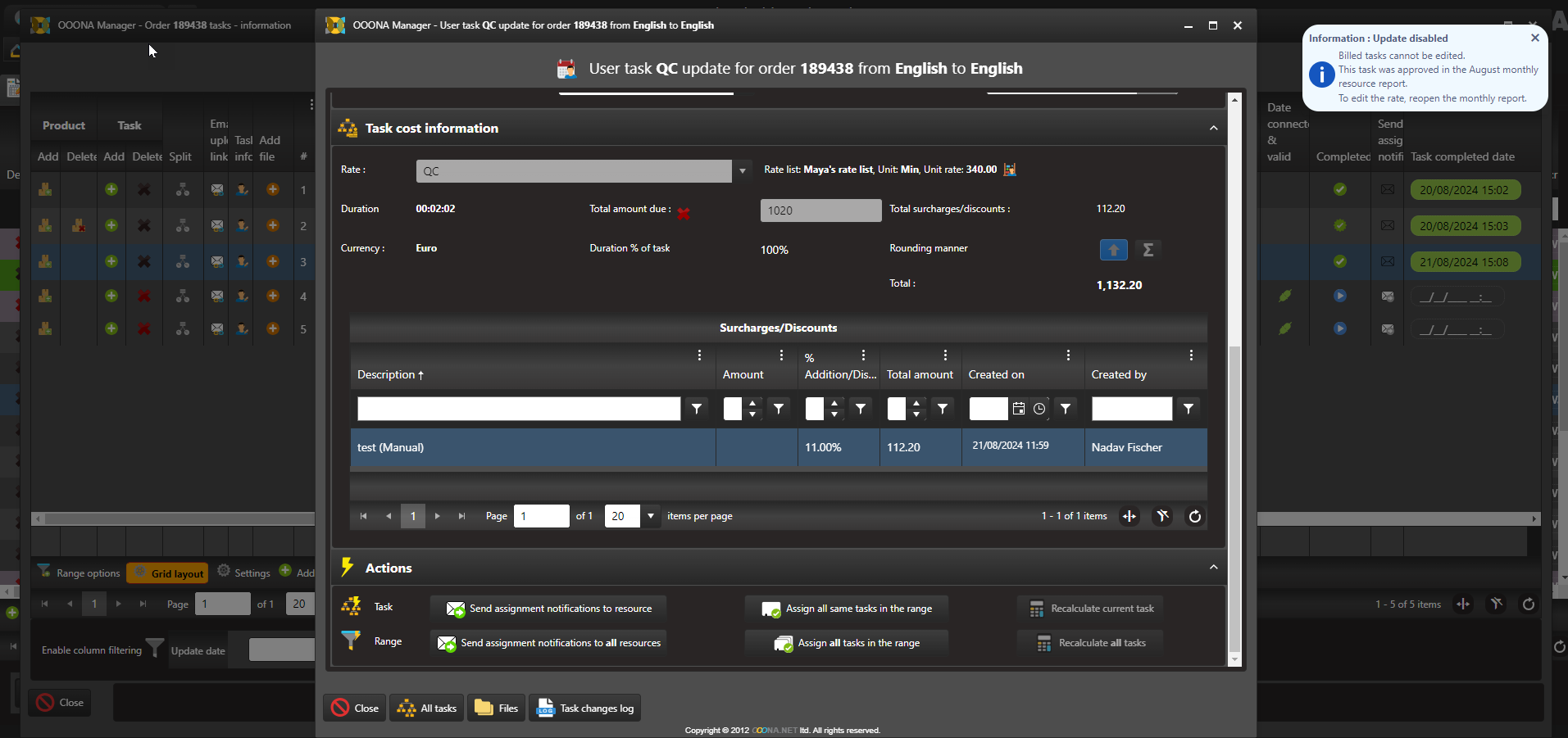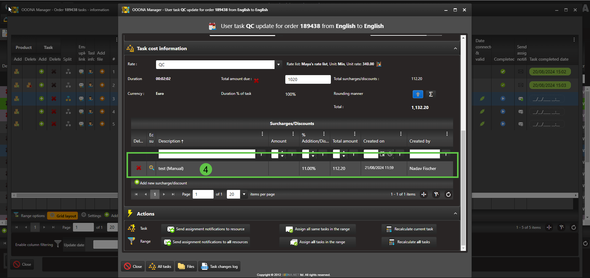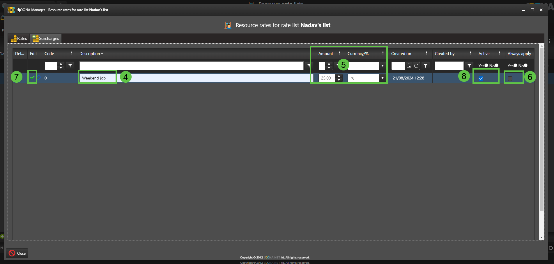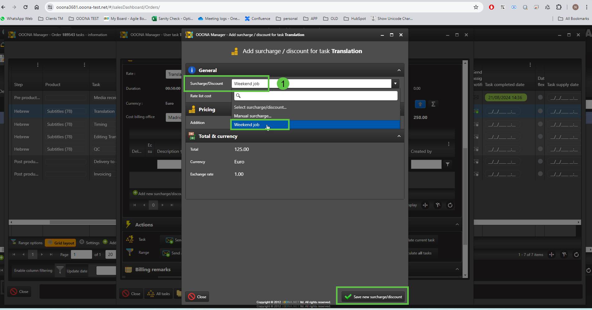 Once done, click Save, and an additional line with the preset surcharge will be added below the task rate.