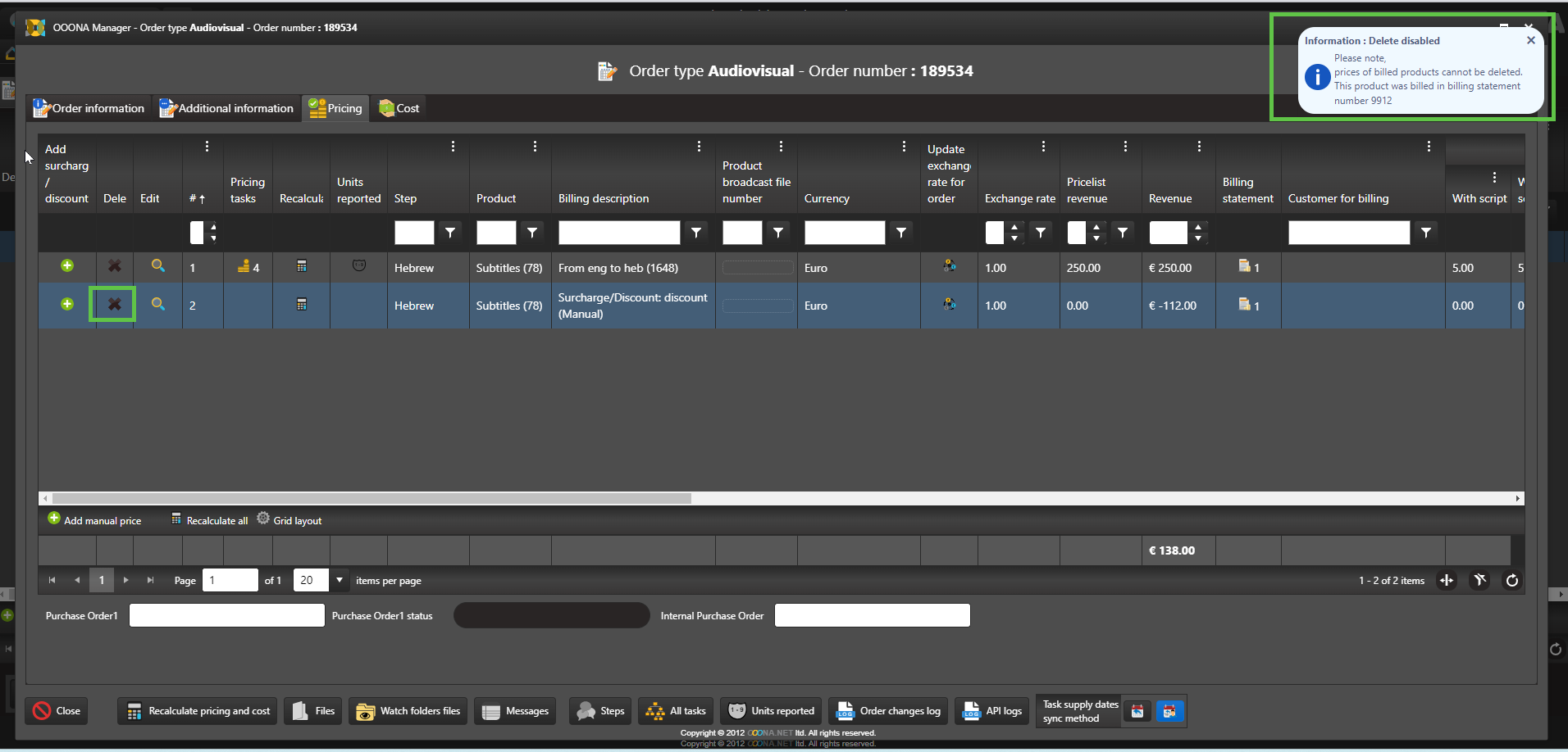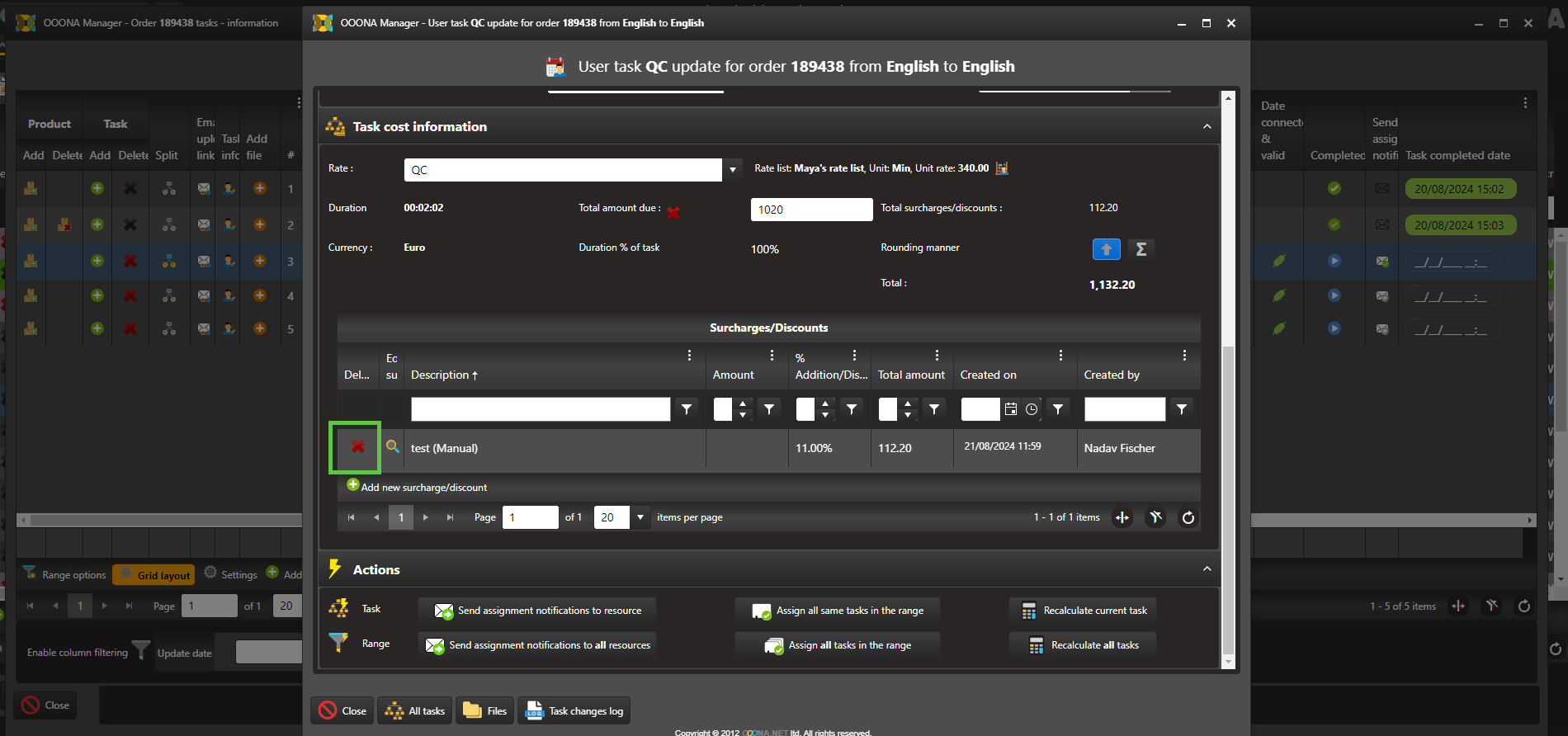 Note that the surcharge cannot be deleted if it’s considered billed (if a resource has already approved his monthly report or the task was submitted in a resource report).