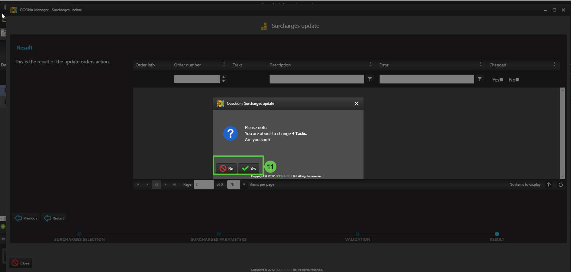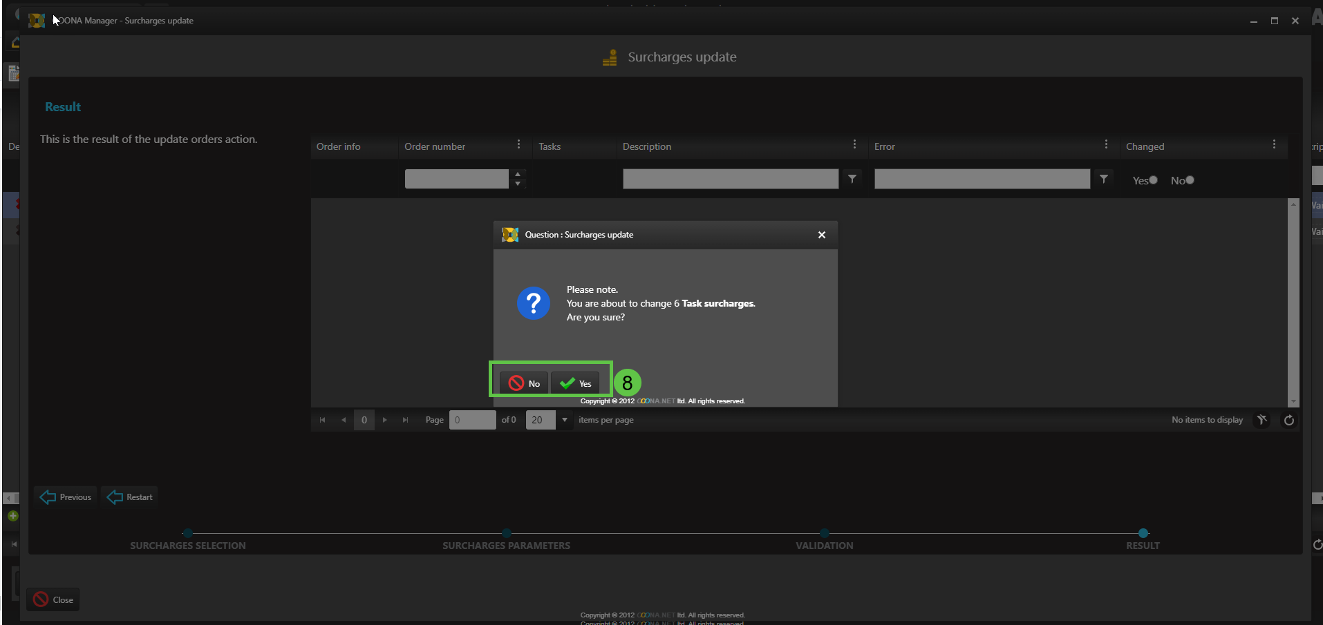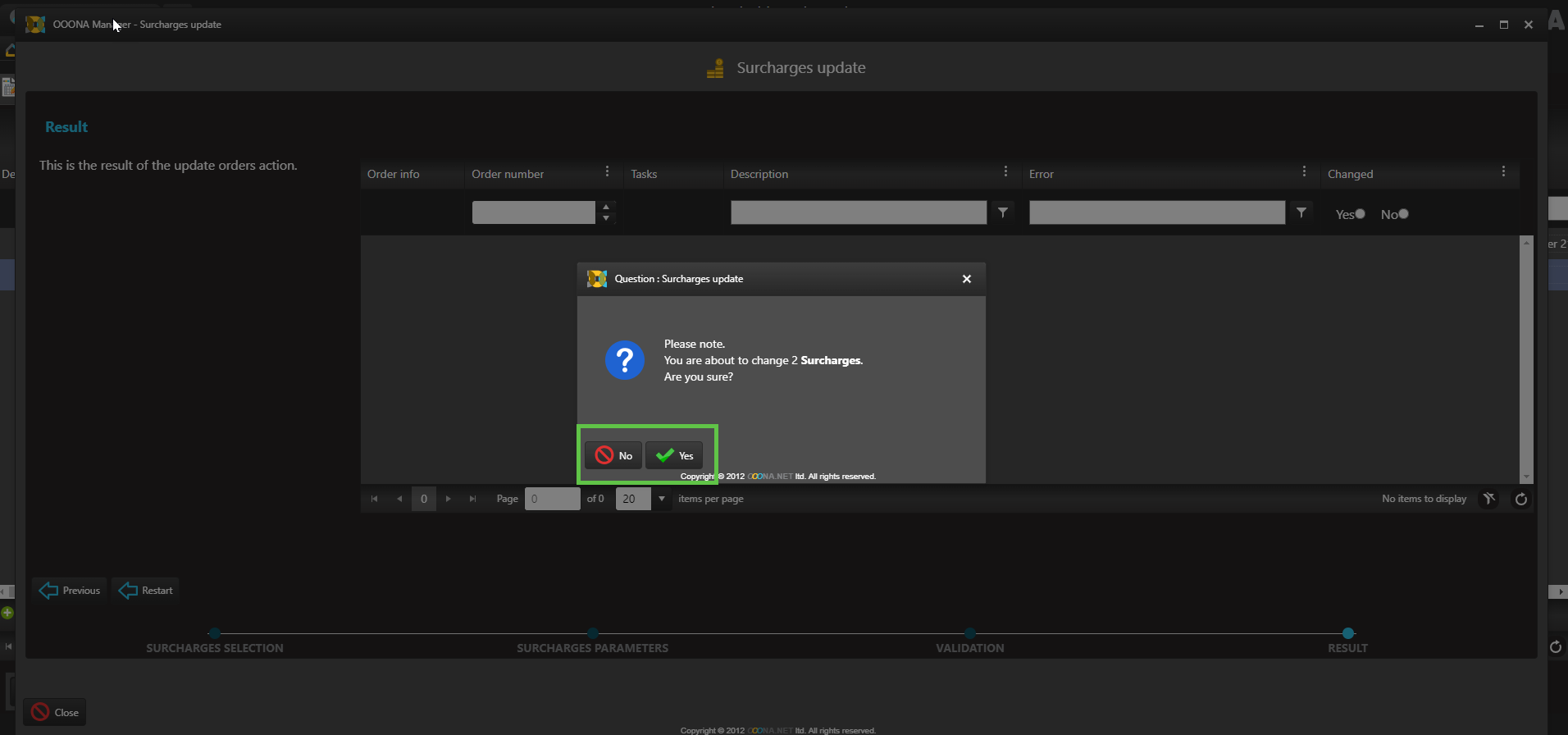 8. Click Yes - to confirm removing the surcharges, or No - to return to the previous screen.