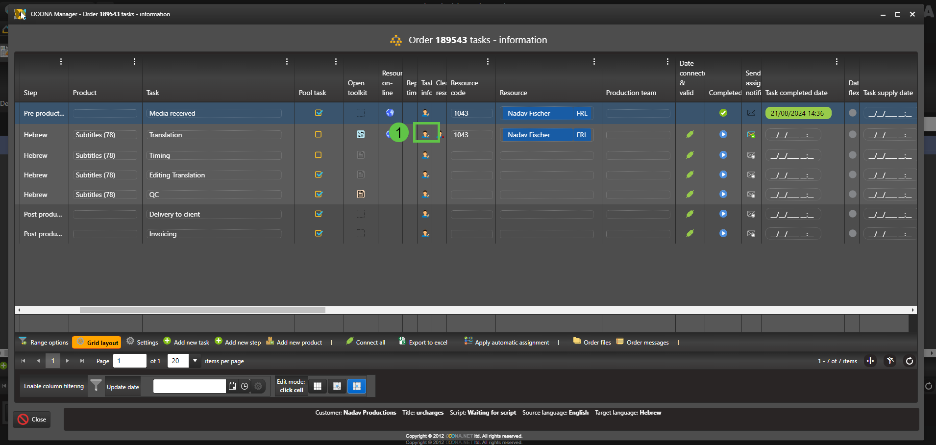 Locate the task to which you wish to add surcharge, and click the Task Edit button.