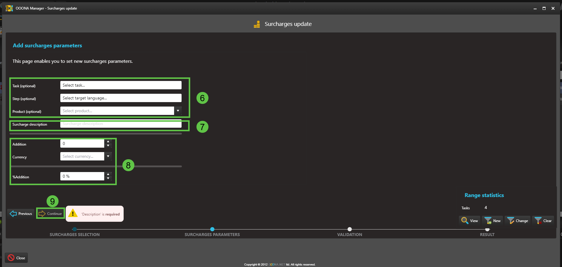 6. a. (Optional) specify to which Task the surcharge will be added.