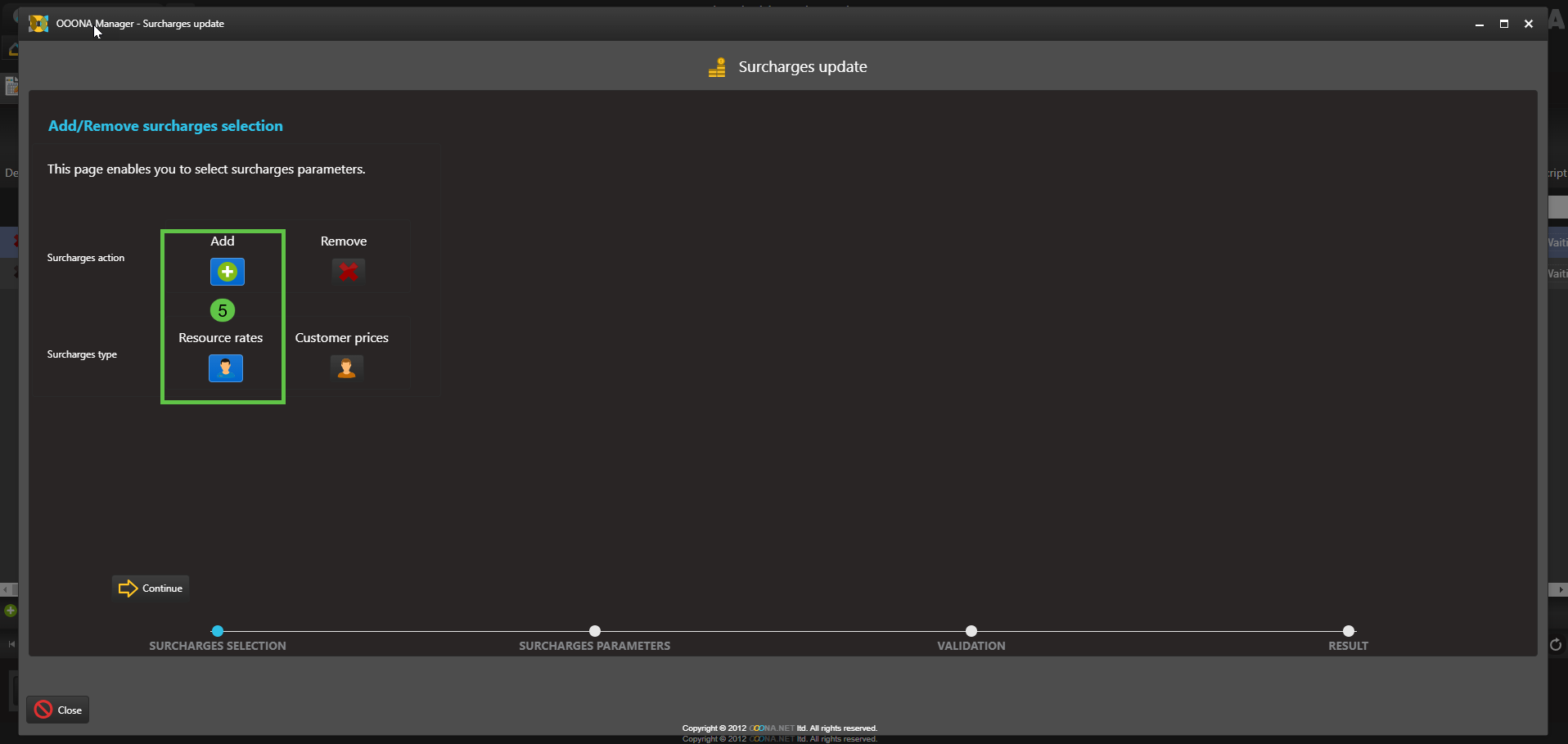 Click on Surcharges to open the Bulk surcharge update wizard.