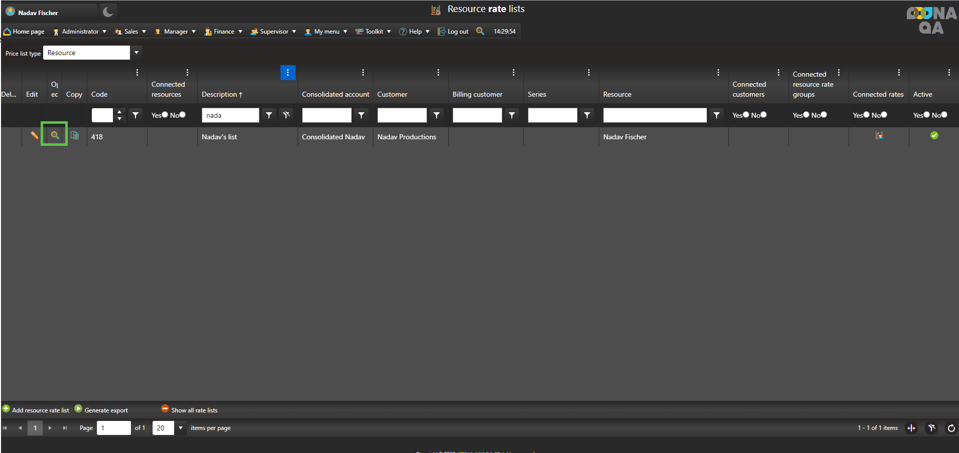 Locate the resource rate list to which you wish to add a preset surcharge, and click the Edit icon 🔍.