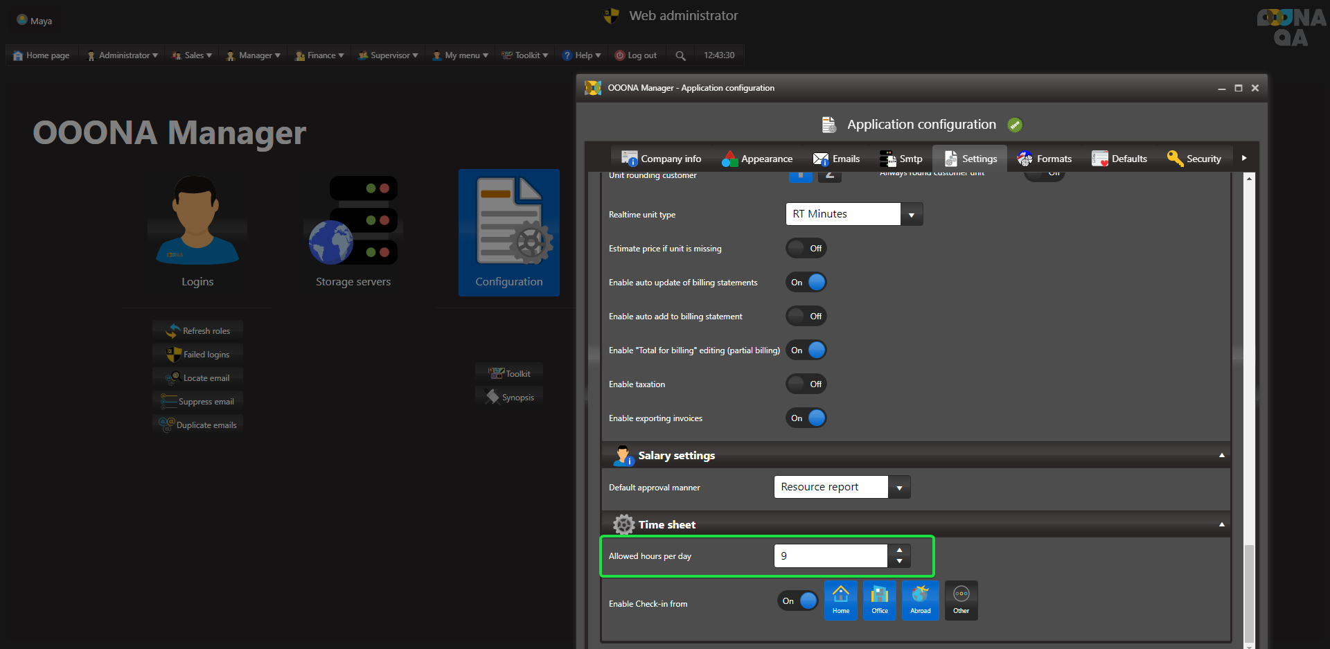 To enable location selection for all enabled users click “Enable check-in from” (fig 1)