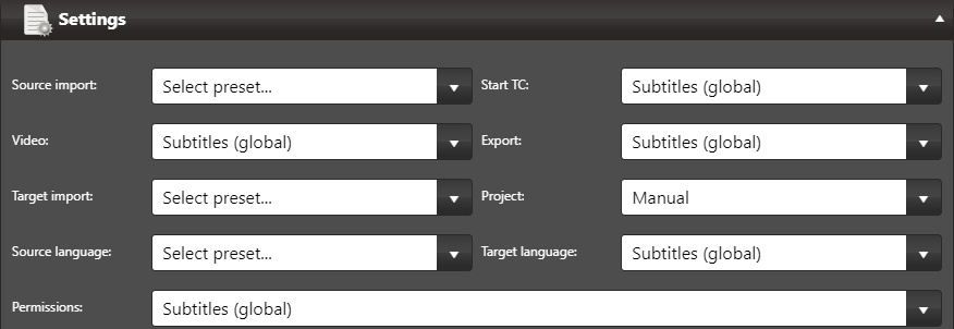 - Settings: A list of configuration types which can either be set to Manual or linked to already existing presets.If you select Manual, you will be able to configure it after the preset has been created.