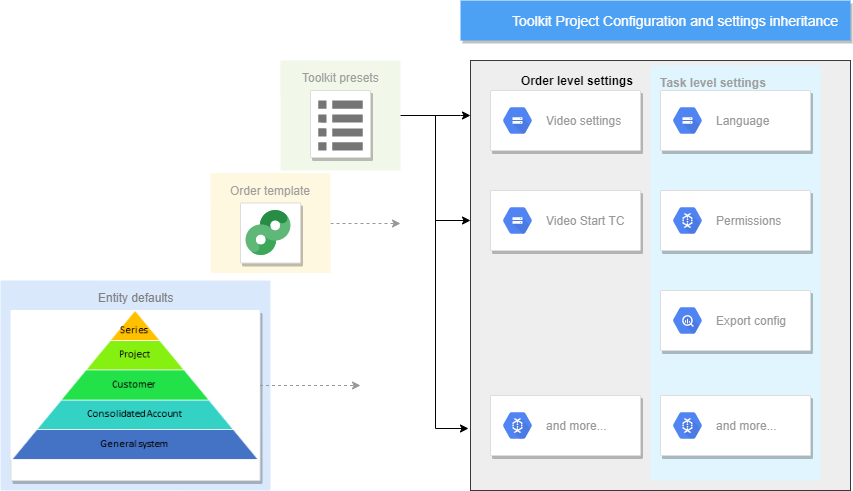 A Toolkit project holds various settings, some of them are on the task level, some of them are on order level.