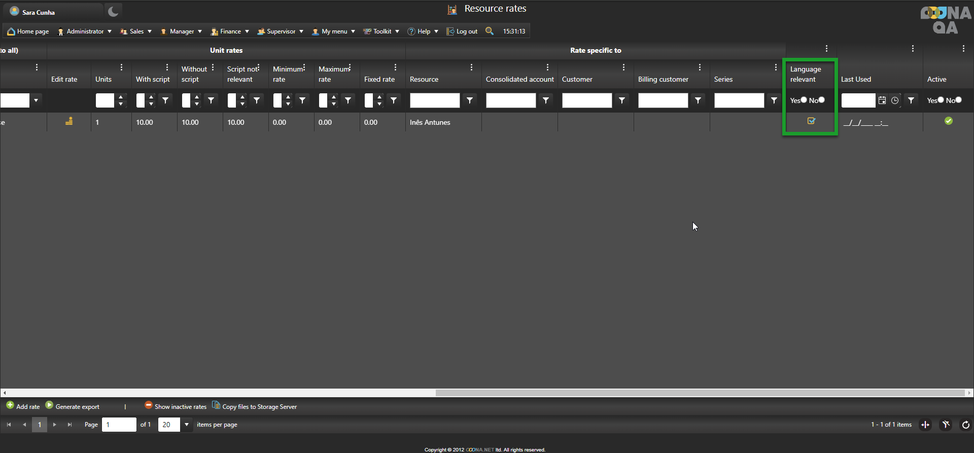 Note that, if checked, “Language relevant” will take the languages selected under “Source” and “Target” into account. It is checked by default, but it can be unchecked during rate creation or after a rate is created.