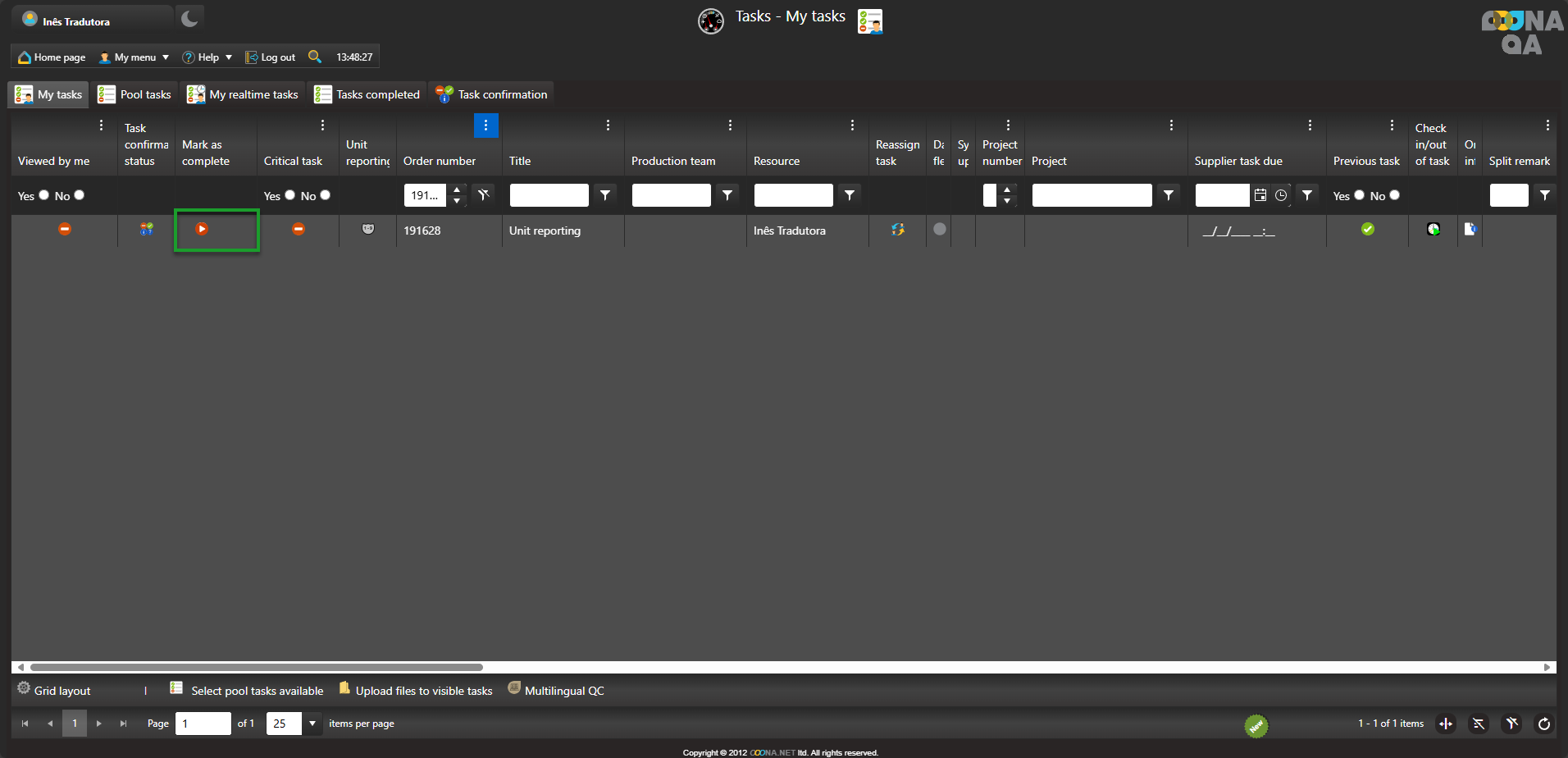 The unit reporting icon is shown in Sales dashboard > Orders, Tasks, Pricing and Cost tabs, Order info > Pricing and Cost tabs as well as My menu > My tasks, Pool tasks, My realtime tasks and Tasks completed tabs.