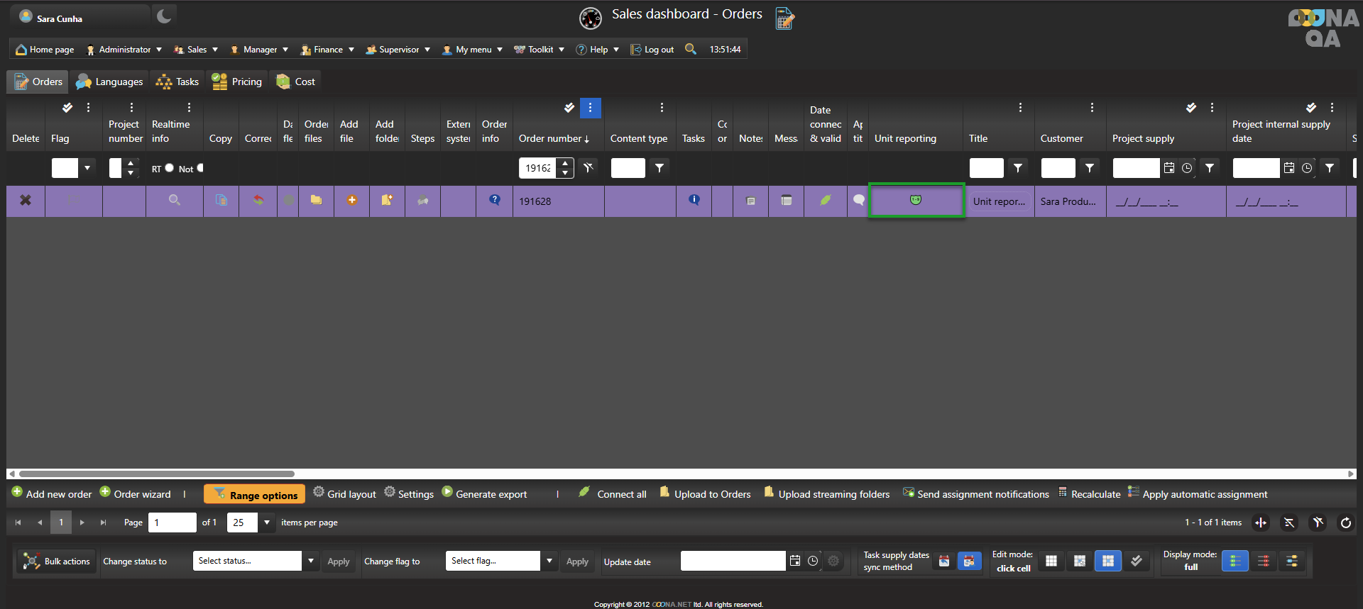 To see the Unit reporting report of an order, go to Sales dashboard > Orders tab and click the Unit reporting icon.
