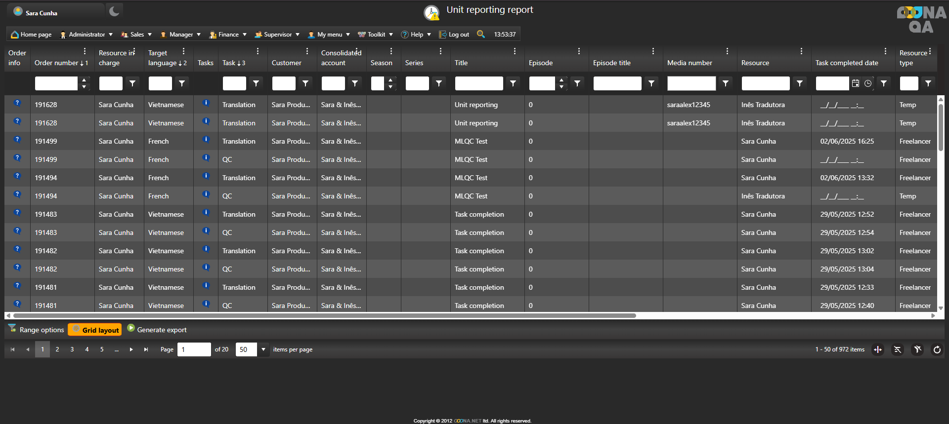 From Manager > Reports > Unit reporting report, there’s a list of all tasks with unit reporting in the system.